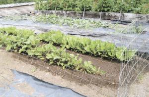 "The wire sections can be easily lifted at one side, or even removed, for easier weeding and picking and then replaced," says Earley. "We plant low vegetables at the edges and taller ones in the center to give them more room to grow. The wire doesn't blow off and will support clear plastic the following spring to create a greenhouse effect."