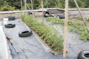 "Our garden is located on the roof of our earth-sheltered house. We've always had an abundant supply of weeds and after years of pulling and hoeing, we finally gave up and covered most of the area with 6-mil black plastic," says Earley, who cuts holes in the plastic for plants.