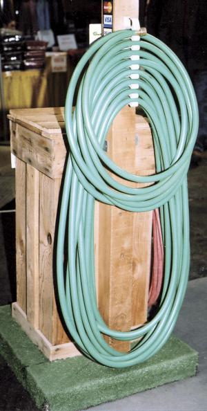 Three different models of the "Gecko's Toes" rack are available for water hoses, air hoses, and extension cords. The air hose version can be used to hold welding leads, power washer hose, and oxygen acetytlene hoses.