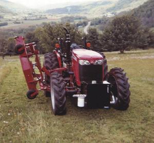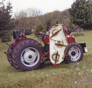 Moving the mower to one side of the tractor makes it fun and easy to operate says Van Dam and I can see everything well without having to look back My Massey Ferguson 2625 tractor has power steering so I can turn the mower around on a dime Also with the mower on the side I can use it to cut grass over gullies where a 3-pt mounted model couldn t go