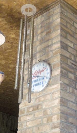 The wind chimes hang above the stove where the hot air rises, Mullins emphasizes. The brass chimes make noise when the stove is putting out a lot of heat. They make just a little noise when the heat is moderate.