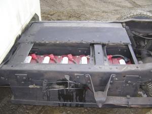 Twenty 6-volt, deep-cycle, lead-acid batteries stored under the pickup bed power Anderson's truck. The charge plug is on the back of the passenger side of the cab. A plug outlet attaches to a headache rack. Anderson uses the electricity for grinders or drills and even an electric frying pan to cook a meal while out working.
