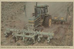 Ridge Riders are available to match 4 to 8 row planters, planting 30-40 in. rows. Larger models can be special made. The unit requires about 15 hp. per row to power.