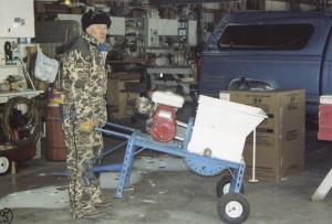 Ron Hein's homemade mini hammermill makes great plant food. It grinds up horse manure and other material so it's easy to spread and breaks down fast in the soil. The 35-in. long, 16-in. wide hammermill is easy to transport with a tow bar on it, and can be maneuvered around with drop down handles.