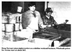 "I haven't made a ton of money yet - it's still a part-time, weekend venture - but I know it's going to pay off eventually," says Doug Tarrant, Taylorville, Ill., who started a worm business to supplement his income a year ago after spotting an ad in a a local publication. After learning he could get into the commercial worm business without a substantial up-front investment, he decided he'd have nothing to lose.