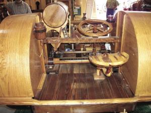 "Doing the worm gear for the steering mechanism was really involved," recalls Pray. "Clyde suggested using two strips of masking tape to make the spiral and making a jig to hold it as I worked. I used a 1/8-in. router bit to get the depth of my cut, following the centerline between the pieces of tape. I then had to make 15 passes with a special router bit to get the right pitch and depth of the worm gear."