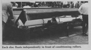 Coleclough says the new mower design requires about 30% more horsepower than conventional disc mowers. The 12-ft. mower sells for about $14,000 and 7¢-ft. and 9-ft.versions are also available.