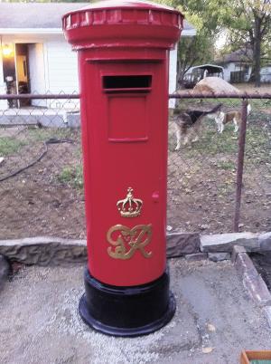 With help from my friend Danny Cheshier, I made this full-size replica of a British “pillar box” mailbox. It can handle any amount of mail as well as most large parcels. There’s no need to worry about “holding” my mail while I’m on vacation, as the mailbox locks tight and is built tough - no one will ever hit the post with a bat because it would hurt their hands.