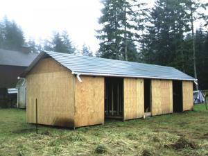 The somewhat temporary barn has already withstood a 12-in. snowfall. When Kunkel designed it, he made it extra sturdy by adding extra rafters between the recommended rafters on 5-ft. spacings.