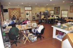 An attached, ground level 1,200-sq. ft. craft studio has tables, electrical plug-ins and good lighting for 16 crafters, who each have their own twin bed in the home’s four bedrooms.