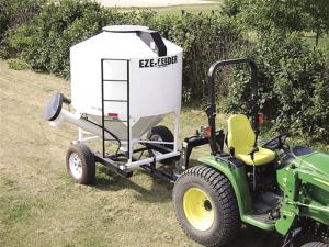 Over the years, he has added different options such as an 8-in. dia. vertical mixing auger; an electronic scale with 4 load cells and digital read-out; the option of either hydraulic orbit motor or 12-volt electric drive on the discharge or mixing augers; a trailer kit so the unit can be towed with a pickup, ATV or small tractor; Cat. II or III 3-pt. frames for mounting on larger tractors; and a model with pockets to be used on pickups equipped with hydraulic bale beds.