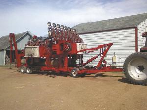 “I built the rollers out of 1/2-in. thick, 24-in. dia. oil well pipe,” says Hoogestraat. “The center roller is 12 1/2 ft. long, and the two wings are each 16 ft. long.”