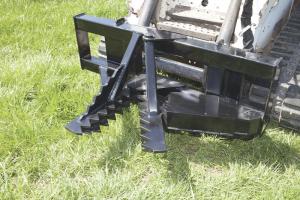 The tree puller is equipped with double rows of teeth that form jaws. When both rows of teeth are closed they form spade points that can be used to dig out roots and loosen the soil, allowing you to remove the entire tree. A “root ripper” located on top of the blade can also be used to cut roots when digging.