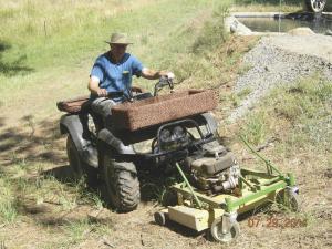 “My 4-WD ATV can climb hills and turn, even on steep ground, without tipping over. If it can climb the hill, it’ll mow it,” says Wells.