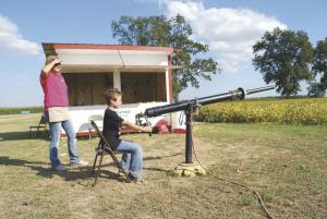 “It’s more a matter of luck,” Peebles says about hitting the target. “You’re shooting corn so the ears weigh different and aren’t shaped the same. No two bullets are alike. We have more 5-year-olds hitting the target than anyone else.”