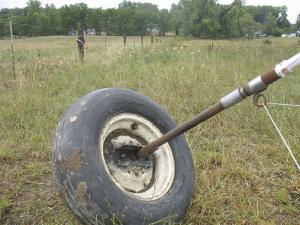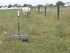 “It’s really easy to use, and the entire pipe is electrified which keeps cattle from bothering it,” says Hochstetler. “It’s much easier to move than metal or wood posts, and also more stable than a step-in post. Everything on it’s ‘hot’ except for the tire and plastic handle. As I roll the tire the pigtail swivels around the pipe, which keeps the wire from getting tangled. The tire provides a center of gravity that keeps the pipe stable at all times.
