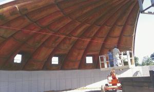 In March, Smith dug footings and a foundation to support 1-ft. thick concrete walls. It took 162 yards of cement for an Amish crew to fill the 10-ft. tall wall forms. After letting the concrete set for three weeks, Smith hired a crew with a 100-ft. boom to set the panels.