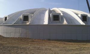 Every other panel has a 3 by 3-ft. opening. He plans to cover them with plexiglas sheets for the winter. During the summer the openings let in sunlight and circulate enough air to keep the temperature 5 to 8 degrees cooler inside than outside. Smith figures covering the openings and installing a vinyl strip door will also keep the building warmer than the outside in the winter.