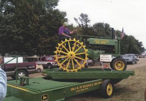 “I have the tractor jacked up an inch off the floor so when I put it in gear, the wheels turn as the tractor rotates,” says Manthe. “I get a lot of attention when people see the tractor rotating. My wife Jo drives the truck in parades, and I sit on the tractor.”