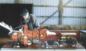 The work involved a lot of trial and error. Bruder built the model in 2008 and spent about 1,500 hrs. on it. The retired sheet metal worker and dairy farmer notes that when he was a boy his neighbor had a Robert Bell threshing machine, and he helped thresh grain with it.
