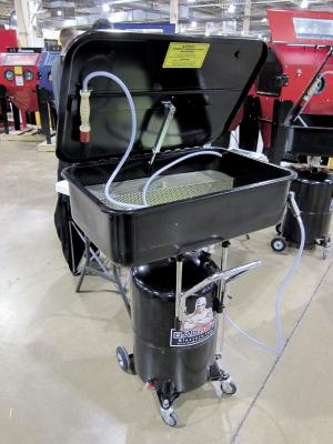 Instead of using an electric motor to pump solvent, this new portable parts washer uses your existing air compressor.