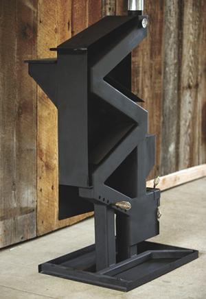 The burning chamber is made of heavy-wall square tubing. The pellet stove has a 75 percent efficiency rating with deflectors and a heat shield to direct heat to flow from the front. The back of the stove is cool enough to be within 2 in. of a wall.