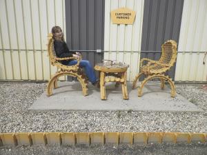 Other popular outdoor attractions at the Fox Creek business include a picnic bench-style table and chairs with matching side tables, and a working rocking chair. DeCiccio also donated lawn ornaments to the local golf course and tourist booth.
