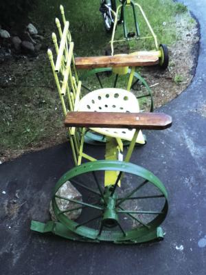 Someone gave me this cast iron seat. He wanted to give it a good home so I told him I’d convert it into a rocking chair. The 15-in. high steel wheels are off a small wagon, with leaf springs welded onto the bottom. The armrests are made from stained wood, and the back was made by cutting down a steel gate. There’s a cup holder on one side. (George Feltz, 6280 5th St., Stevens Point, Wis. 54482, ph 715 341-0162)