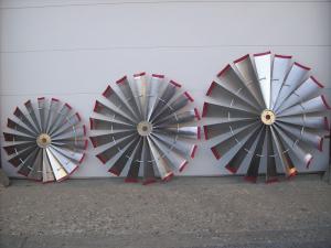 The fan head is available in 4 5 6 and 8-ft diameters The 4-ft head kit is designed for 15 to 20-ft towers and sells for $940 A steel fan head is also available and sells for $850 The 8-ft head kit is designed for 35 to 40-ft towers and sells for $1 725