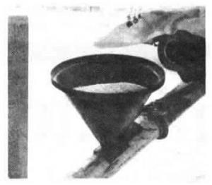 The funnel slides easily onto mounting brackets that bolt onto the auger tubing, so one funnel can be used on more than one auger. A sliding door at bottom controls flow rate into auger.