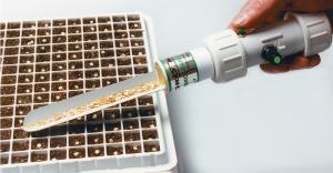 Morin also designed a variety of tools for small and large growers alike. The vacuum bulb Mini Wand models ($30 to $52) are designed for home gardeners and greenhouses. They use a hand activated vacuum bulb to create the seed-holding vacuum.