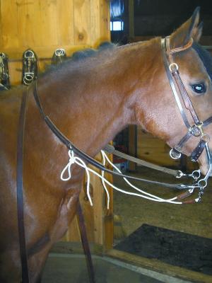 EZ Equine Training Tools are custom-made by Maine crafters using quality leather, fabrics and stainless steel, Davis says. Her website lists them in the order horse owners need them as they break horses to ride: bitting halter, working cavesson, combo side reins, longe line adaptor, sack system and neck reiner. She also offers packages and specialty items for driving horses, such as training shafts and wiffle trees.