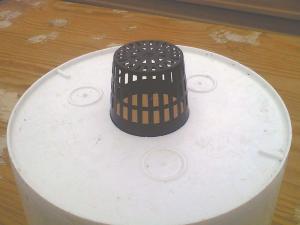 In a step-by-step YouTube video (with nearly 105,000 views) he shows how to frame standard 10-ft. vinyl rain gutters with end caps inside treated 2 by 4s. Hall drills 2 7/8-in. holes in the bottom of each bucket (or pot) so that a 3-in. net cup (used in hydroponics) fits snugly. It allows water in the rain gutter to be drawn up into the potting mix to water the plant. Water is constantly available thanks to adjustable plastic floats ($9) connected to the end of the rain gutter. When the water drops to a certain level, the float opens to add more water. With additional plumbing, several gutters can be connected to one water source.