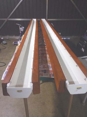 After research and experimenting he developed his rain gutter system, which holds nine 5-gal. buckets, self-waterers, and costs less than $65.