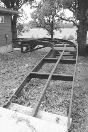 Measuring close to 800 sq. ft. and reinforced by angled braces welded to the posts and stringers, Bauer says his deck will support 200 people and still be strong enough that a chain hoist anchored underneath can lift a good size farm tractor. The deck support structure is similar to those he used to build to hold 100-ton presses at a large printing company in the town where he worked.