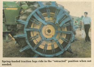 Made of molded steel, the Traction Aid is a series of spring-loaded arms that fit across the tire tread, providing extra traction and biting power. The device bolts onto the wheel rims of combines, trucks, and tractors, including 4-wheel drives.