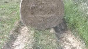 Water runs off the bale sides and into the tire tracks instead of under the bale.