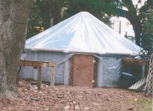 Witt then built benches around the inside walls of the greenhouse by sinking 4 by 4 legs into the ground and made a door out of 3/4-in. plywood. To cover the structure, he went to www.growersupply.com (ph 800 748-6487) and bought clear greenhouse film measuring 28 by 30 ft. to go over the top. He put foam padding on top of the center pole and used double-sided tape around the outside edge.