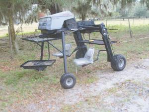 Paul King says harvesting fruits and vegetables is a lot more enjoyable with the 2-man, self-propelled harvesting cart he built out of a Sears Craftsman riding mower.