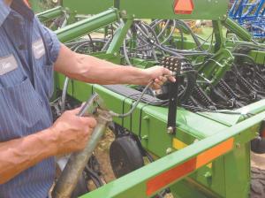 They Rebuild Air Seeders And Install Control Lube Systems AIR SEEDERS Totally rebuilding an air seeder costs 1/3 as much as a new machine and the greasing system designed by owner Dave Houtwed will likely save money too not to mention time “We can rebuild a seeder for about $25 000 versus $75 000 to $80 000 for a new one ” says Houtwed When he started the company Houtwed would send crews out to the farm often for days at a time He soon began bringing the row units into a central shop for a complete rebuild from gauge wheels and disk blades to bushings and seed hoses Business grew from 5 or 6 rebuilds the first year to 100 or more today Other services provided by Precision Ag Solutions include adding fertilizer setups to planting equipment and strip-till machines and setting up new equipment Along the way Houtwed got the idea to simplify greasing on air seeders “Our greasing system eliminates getting down and crawling under the seeder to grease every port ” he says “It cuts greasing time from an hour and a half or more to 10 to 15 min ” All too often a port gets missed and a dry bearing is a ruined bearing The greasing system with its 12 000-lb test hoses is available as a kit for $130 a row or $160 installed Though designed for air seeders the system can be installed on other equipment as well He says customers having air seeders rebuilt or buying new air seeders bring them in for a greasing system installation Houtwed says the firm rebuilds air seeders for customers from Texas to South Dakota and Missouri to Colorado For those more distant or interested in installing a greasing system themselves Houtwed offers a 10-page illustrated and detailed instruction guide Contact: FARM SHOW Followup Precision Ag Solutions 30411 N U S Hwy 281 Pratt Kan 67124 ph 620 933-2026; www paspratt com