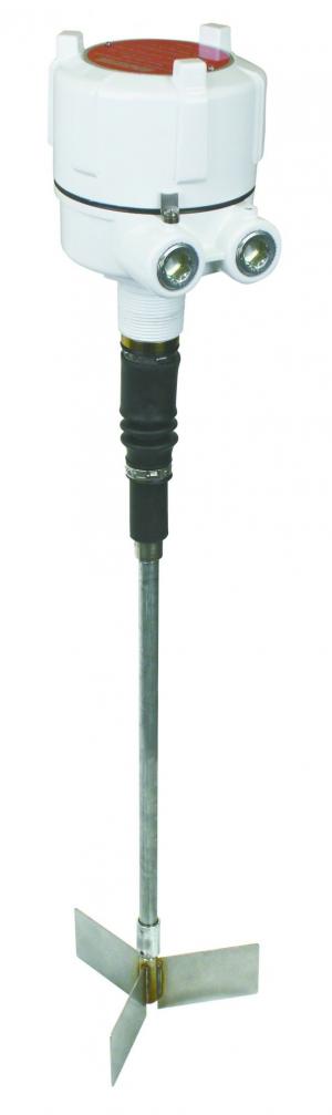 Todd Peterson, vice president of sales, says the detector can be custom configured to measure different levels from the top of a bin. The shaft holding the tilt switch can be set up from 1 to 7 ft. long in l-ft. increments. The device can have a paddle or sphere mounted at the end of the shaft. It can be used in any materials with a bulk density of a least 15 lbs. per cubic foot.