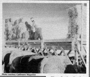 Canadian cattleman Geoff Leney, of Leduc, Alberta, doesn't have to move bales every day to feed his cows. The time-saving feeder he built allows him to haul bales once a week and then stack them right on top the feeder. For each day's feeding, he ù or one of the Leney children ù climbs up and tosses down a few bales, thus eliminating the daily chore of starting the tractor to haul just a few bales.