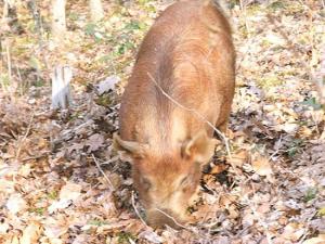 “I’ve compared our production rates to confinement housing and I think we have equal or better gain,” Bowen says. The farm they manage raises Berkshires, Hampshires, Durocs and Red Wattles. Bowen purchases weaned piglets from other producers. “We start them in an open pasture so they learn what an electric fence is,” Bowen says. “We move them into the woodland paddocks when they’re at 70 lbs.” Every 3 to 7 days pigs get moved to a new lot. Bowen says the animals forage and fertilize as they go, creating an uprooted soil structure that regenerates quickly and is ideal for new forest undergrowth. They forage for about 50 percent of their nutrition, which comes from roots, nuts, young plants and acorns. Bowen says “Pigs will eat just about anything, including grubs, roots, downed branches, vines and invasive plants. They do a great job of managing the woods, but don’t hurt the trees.”