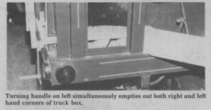Manufactured by Turner Mfg., Thompson, Mo., the 5-in. dia. auger fits standard 8-ft. wide steel and wood boxes. By simply turning the handle attached on one end of the auger, you can empty material from each corner. Auger has "opposing" spirals so you empty both corners at once.