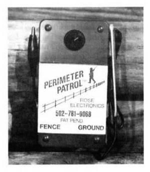 The small 4 by 3-in. box simply mounts on a fence post. One lead clips to the fence wire and the other goes in the ground. When the fence is fully charged, an easily visible red light shines brightly. If power goes off, or drops at all, the light goes off or fades, depending on how you've got it set. For example, you can set the monitor to come on if power drops 10 percent below full power.