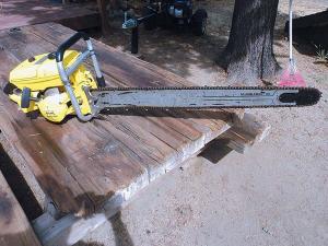 Brannon gets his parts from old saws that he buys from retired loggers or finds at garage and yard sales. Most of those have been sitting for months or years and they’re a good bargain. If he buys a running saw, he pays a good price if the piston and cylinder walls are in good condition. He sells custom-built saws for prices ranging from $800 to $1,200. The higher priced ones are completely re-painted with Zolonite direct-to-metal paint, have 3 coats of clear-coat sealer and look brand new.