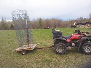 “It works slick. The trailer is the same width as the 4-wheeler and has enough ground clearance that I can get into some difficult locations,” says Girard. “I tie the wire up to a pole and drive the fence unroller to the next pole, zig zagging between the posts to create a fencing pattern that provides more strength. Once all the wire has been unrolled, I use a come-along to pull the fence tight.”
