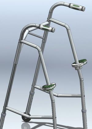 your readers would like to know about my new Arise Assist aid. It uses support platforms that grip the front legs of all standard walkers and pivot with your hands to help you stand. The egg-shaped nylon support discs mount on top of stop collars that attach to the leg with set screws. The discs are made in 2 halves, allowing them to automatically pivot with your wrists as you get up.