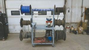 Karl Oysmueller saves time and hassle with his rolling repair table with hydraulic tools and parts. Whether for his own equipment or custom repairs, if a hose end needs work, he just rolls the table to wherever he’s working.