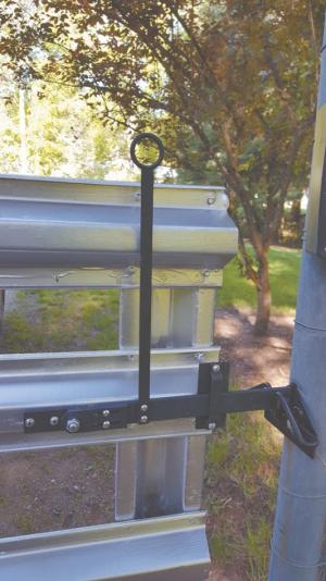 “I have several gates on the ranch with chains holding them shut on fixed latches that do not adjust. I decided to develop a latch that would fit any type of gate, wood or metal,” he explains. “I wanted it to be adjustable vertically and horizontally, because posts have a way of moving. So it can be adjusted up to 1 in. after mounting.”